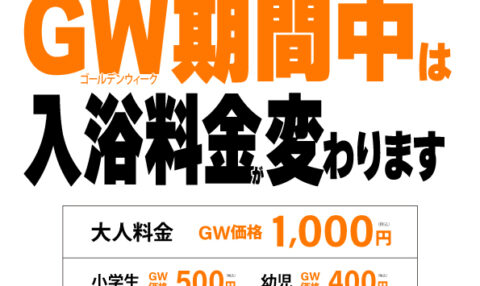 対象期間2026年4月25日(土)~5月6日(水) 料金・大人:1,000円(サウナあり・なし共通)...